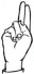 На ћирилици написано ДИНА РАДУШКИ састоји се из 11 слова [?]. Исписано ћириличном једноручном азбуком за глувонеме:
